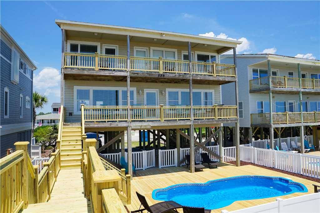 We are Absolutely Shore that this will be your new favorite vacation spot! Spectacular oceanfront vacation rental mansion! This 9-bedroom, stunning custom home offers all en-suite bathrooms, each with double vanities, and two half bathrooms (one in the game room on the first floor for convenience...