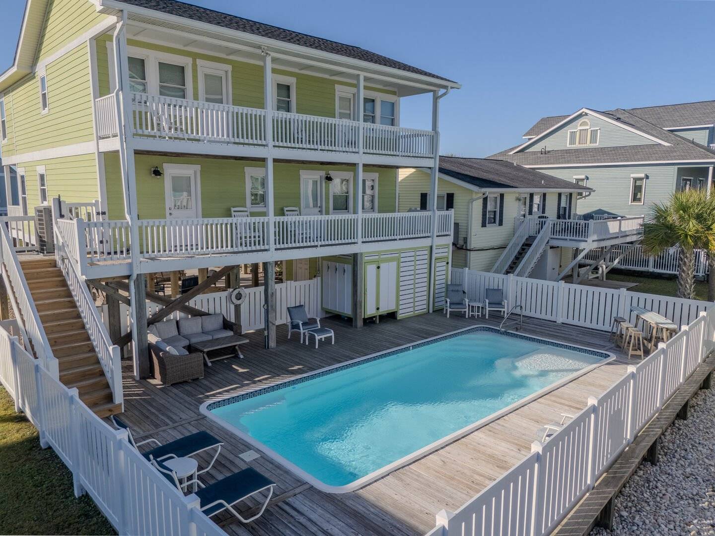 We are Absolutely Shore that this will be your new favorite vacation spot! Spectacular oceanfront vacation rental mansion! This 9-bedroom, stunning custom home offers all en-suite bathrooms, each with double vanities, and two half bathrooms (one in the game room on the first floor for convenience...